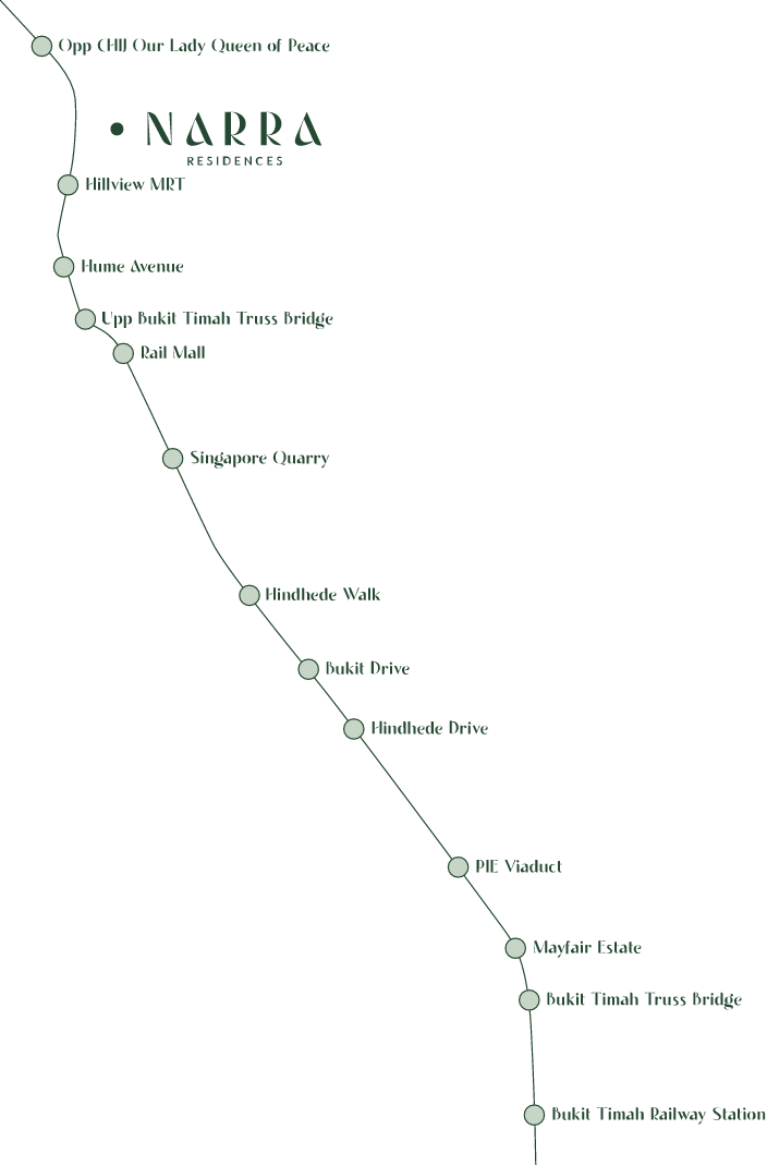At the edge of city convenience and the heart of natural wonders, NARRA Residences finds its perfect place. From sunrise hikes to sunset dinners, every path begins right here, within a short walk or cycle to the Hillview MRT station.